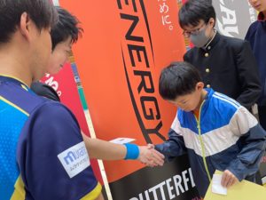 水谷隼と高木和卓選手(ファースト)とのエキシビジョンマッチ、サイン入りグッズが当たる抽選会など盛りだくさんの内容で、会場は大いに盛り上がりました。