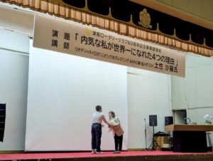 三重県の津市橋南中学校の文化祭にて、土性沙羅が講演を行いました。